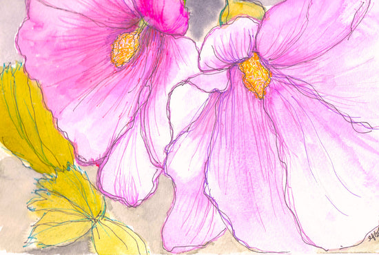 Two Hollyhocks – Original Watercolor Art