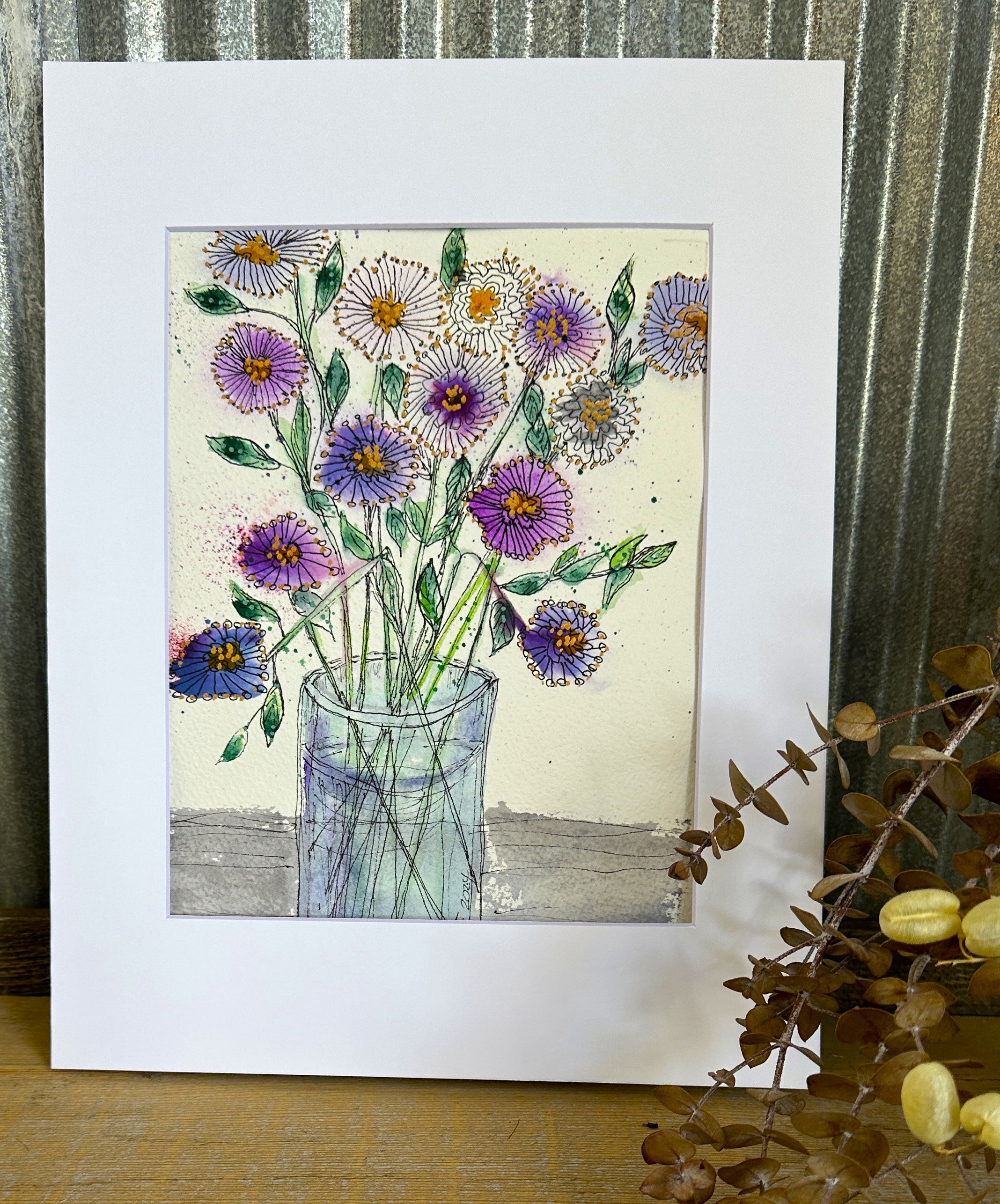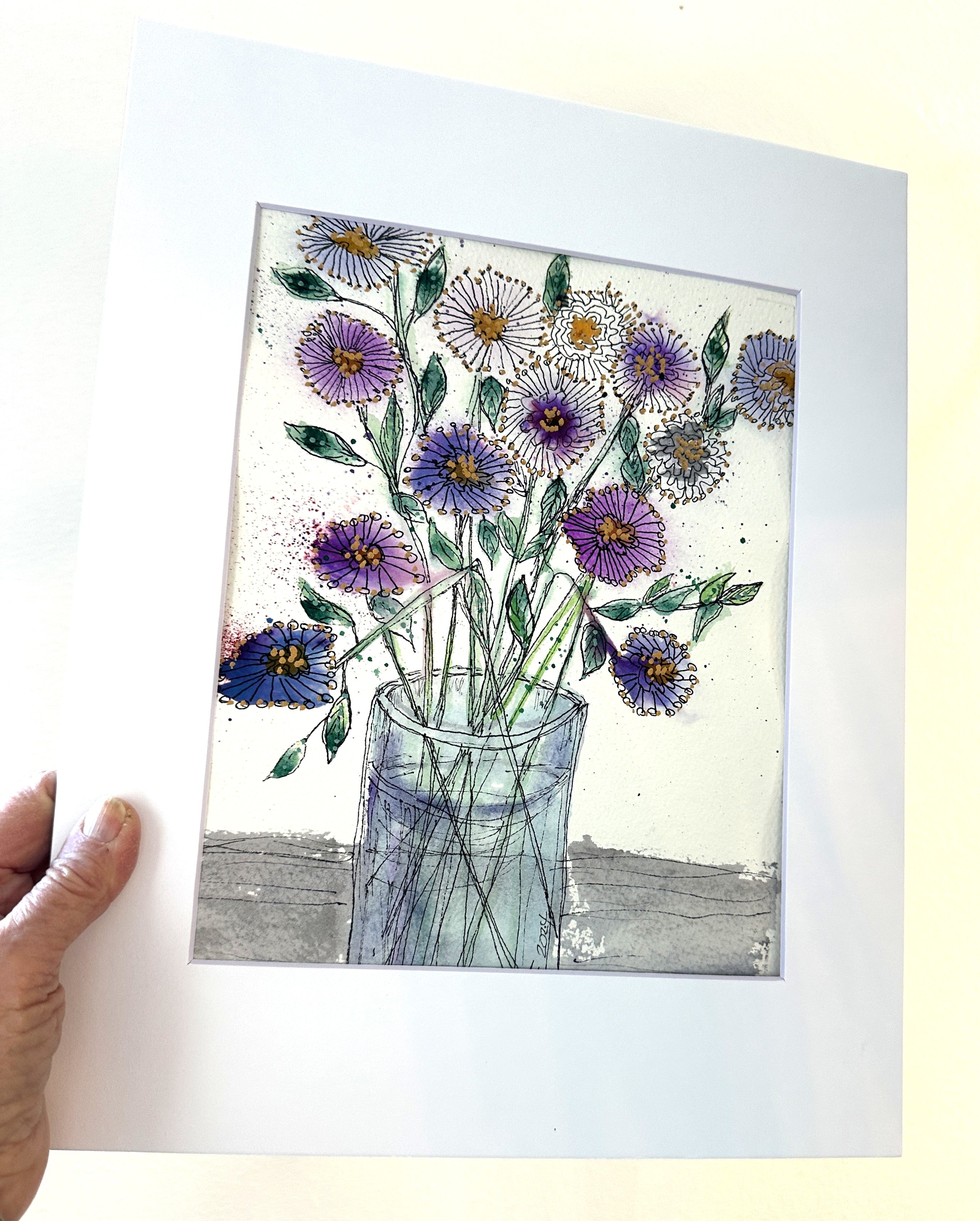 This one-of-a-kind watercolor measures 8 × 10 inches and will be shipped matted to 11 × 14 inches, ready to frame. (Originals ship at no charge). There is only one original — may it bring a smile, a deep breath, and a touch of wild grace to your day.