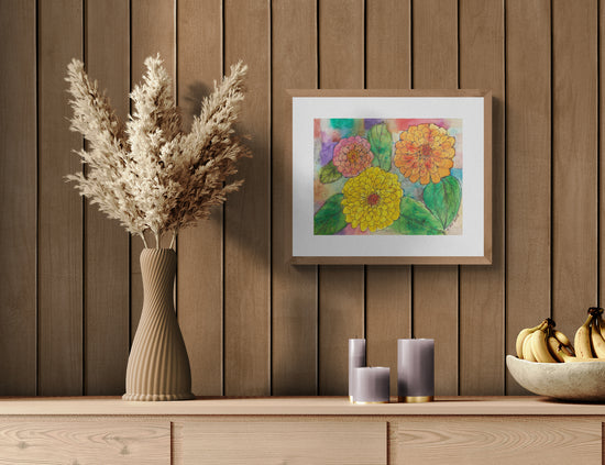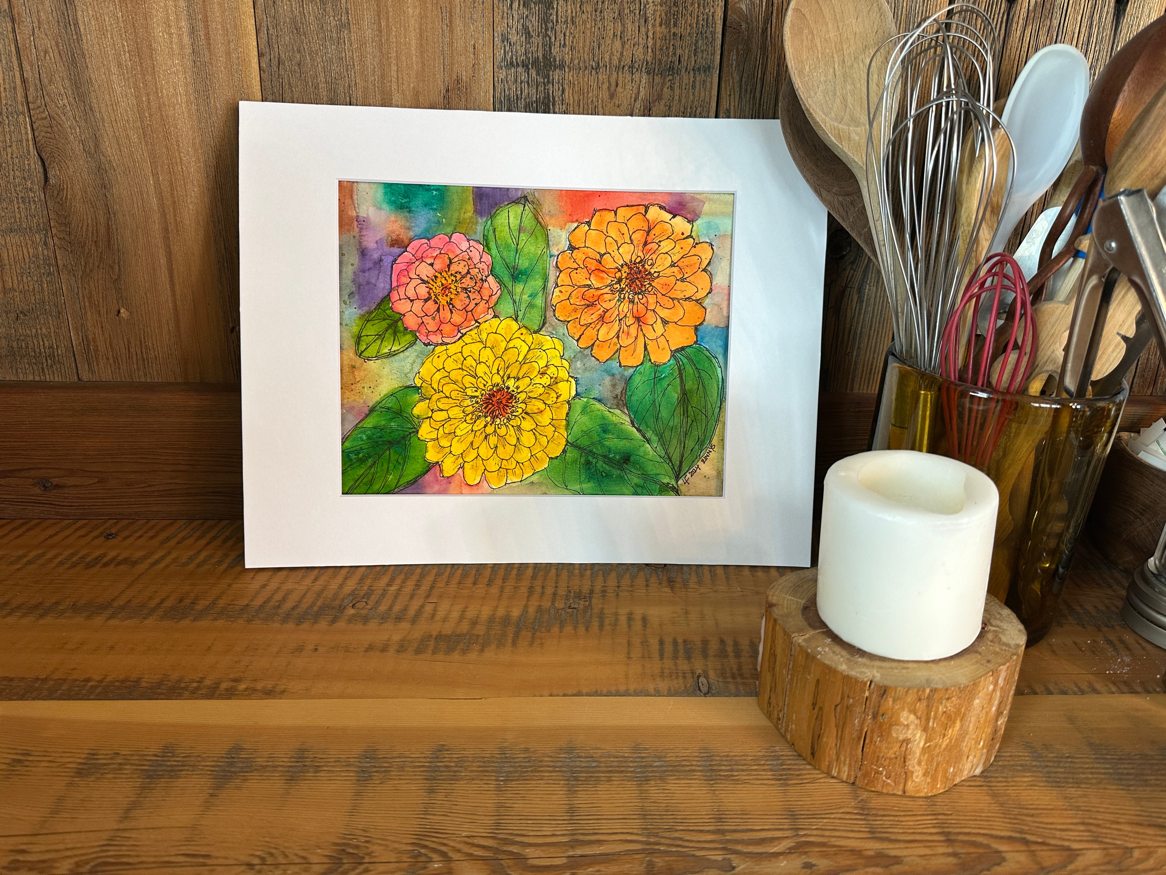 Do you ever find yourself smiling at a simple burst of color — a bloom that seems to radiate pure happiness? Zinnys was painted to capture that moment of joy.